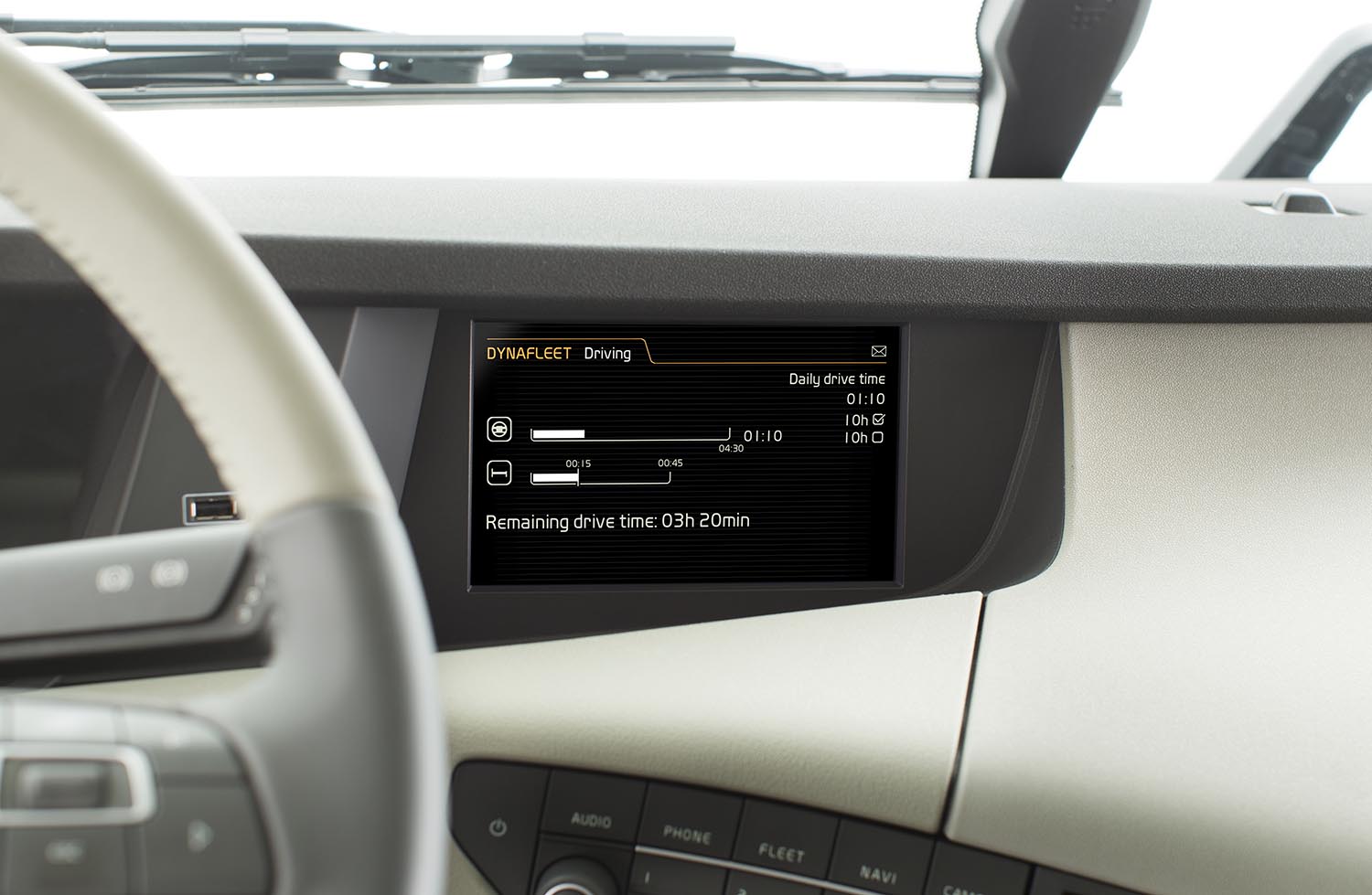 Vanaf nu wordt het voor Europese vrachtwagenchauffeurs eenvoudiger om hun wettelijke rij- en rusttijden te controleren. Met " target="_blank">Driver Times Support, onderdeel van Volvo Trucks’ Transport Informatie Systeem Dynafleet, laat een display direct zien wanneer het tijd is voor een stop. Het is voor vrachtwagenchauffeurs vanuit veiligheidsoogpunt niet alleen noodzakelijk om af en toe te pauzeren, het is ook een wettelijke verplichting. De Europese regelgeving omtrent rij- en rusttijden is echter complex en uitgebreid. Ze reguleert niet alleen de verplichte korte onderbrekingen, maar bepaalt ook wanneer het tijd is voor volledige rustdagen. Er worden hierin makkelijk fouten gemaakt en fouten kunnen voor zowel de chauffeur als het transportbedrijf leiden tot hoge boetes.